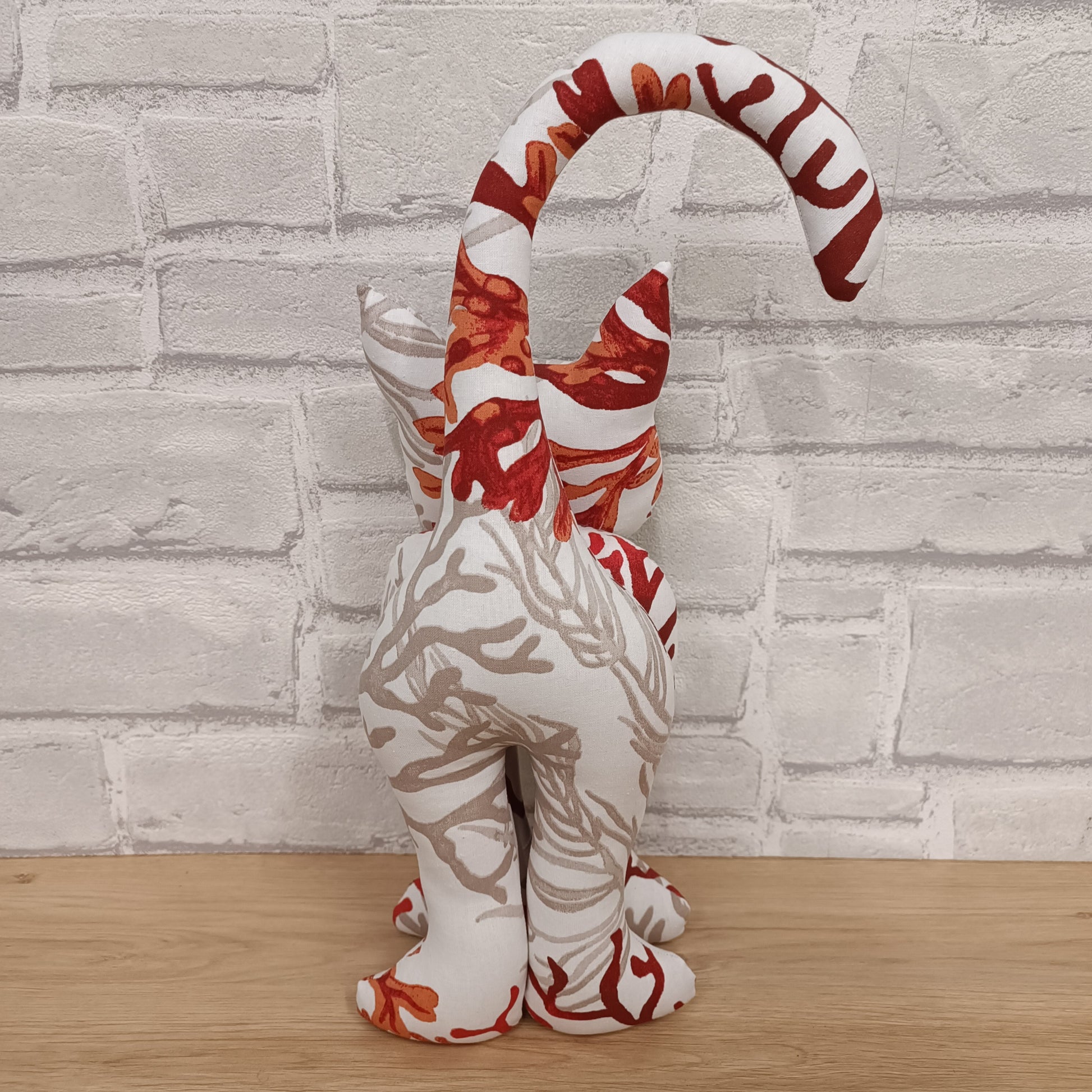 Pour les amoureux des chats, nous vous proposons deux tailles de chat en tissus. Ici, le grand chat, d'une hauteur de 38cm, apportera à votre déco une note gaie et originale.