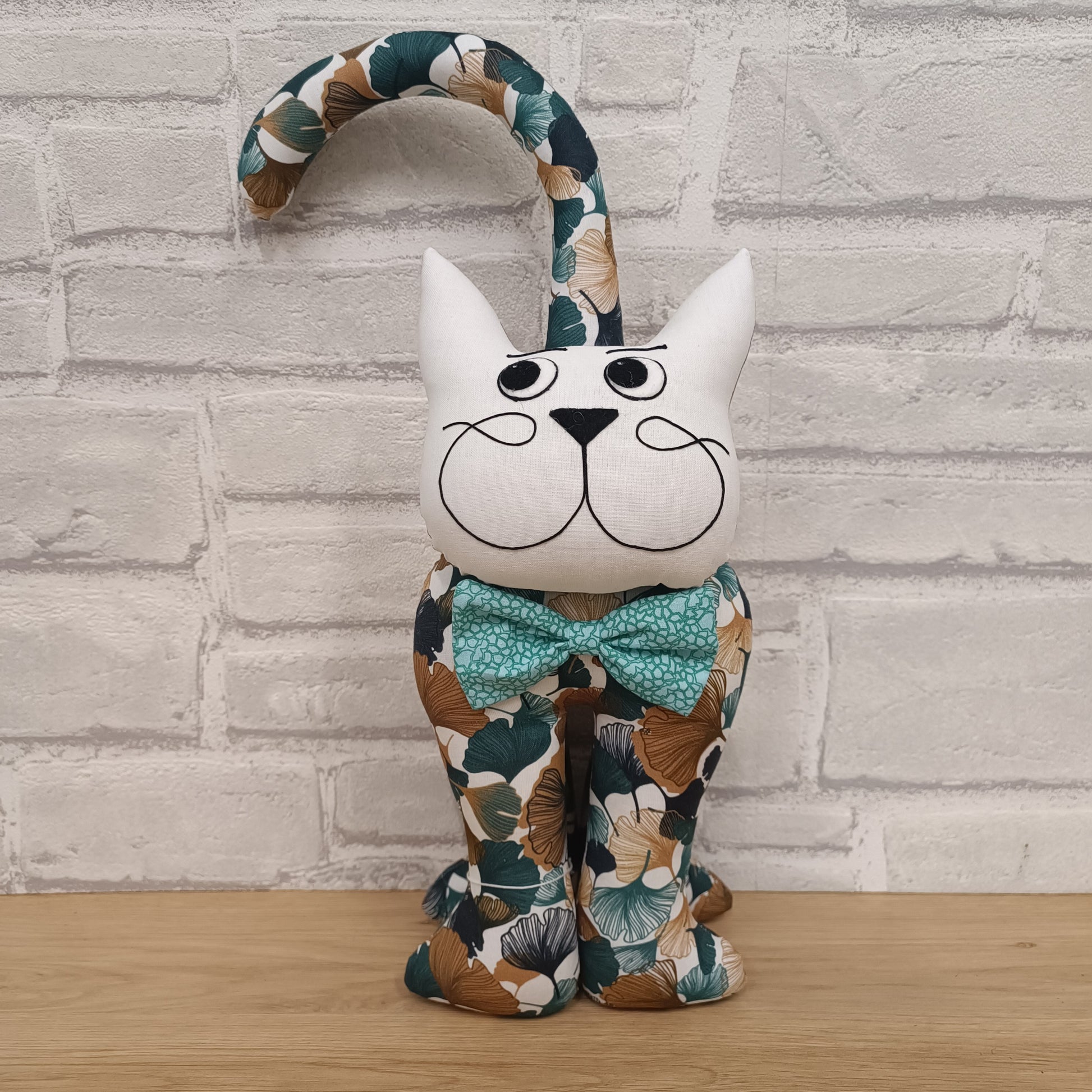 Pour les amoureux des chats, nous vous proposons deux tailles de chat en tissus. Ici, le grand chat, d'une hauteur de 38cm, apportera à votre déco une note gaie et originale.