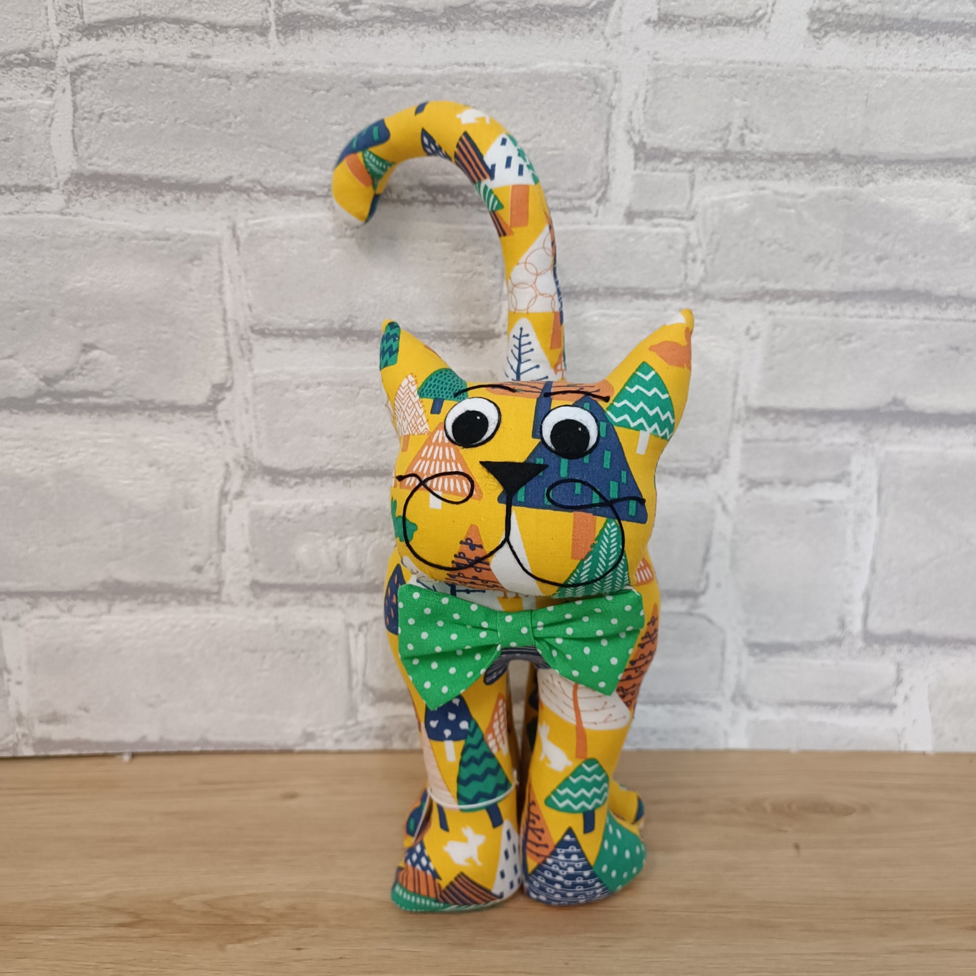 Pour les amoureux des chats, nous vous proposons deux tailles de chat en tissus. Ici, un chaton, d'une hauteur de 29cm, apportera à votre déco une note gaie et originale.