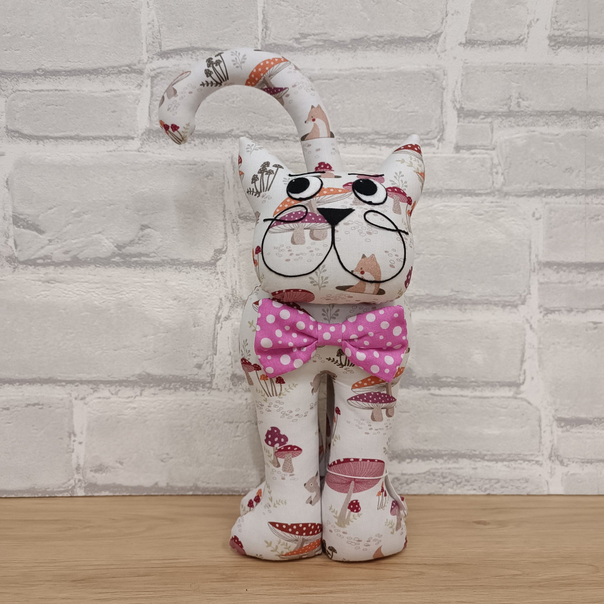 Pour les amoureux des chats, nous vous proposons deux tailles de chat en tissus. Ici, un chaton, d'une hauteur de 29cm, apportera à votre déco une note gaie et originale.