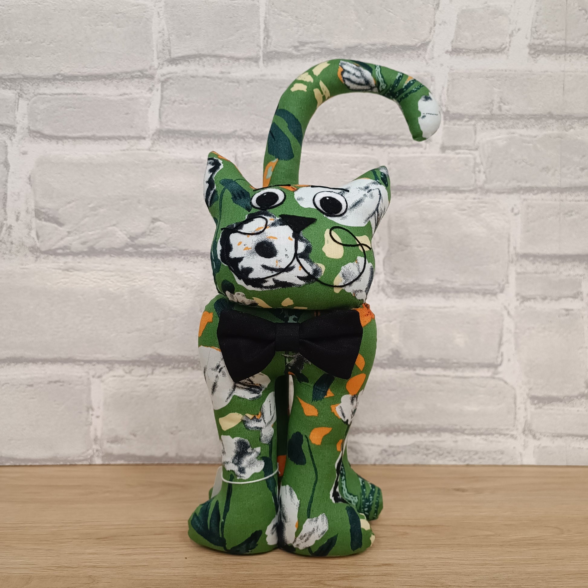 Pour les amoureux des chats, nous vous proposons deux tailles de chat en tissus. Ici, un chaton, d'une hauteur de 29cm, apportera à votre déco une note gaie et originale.