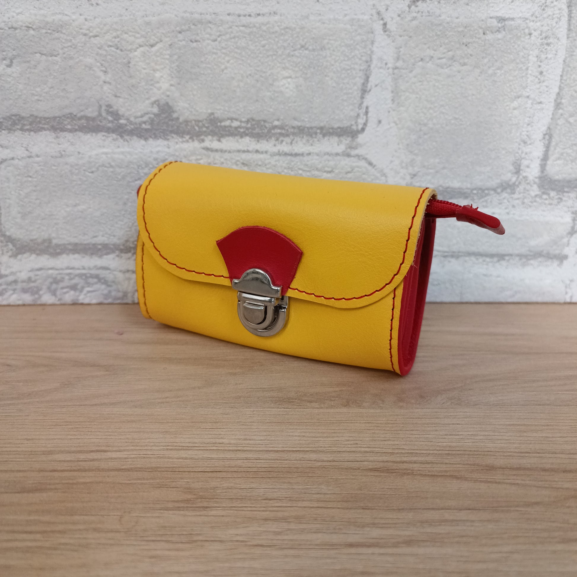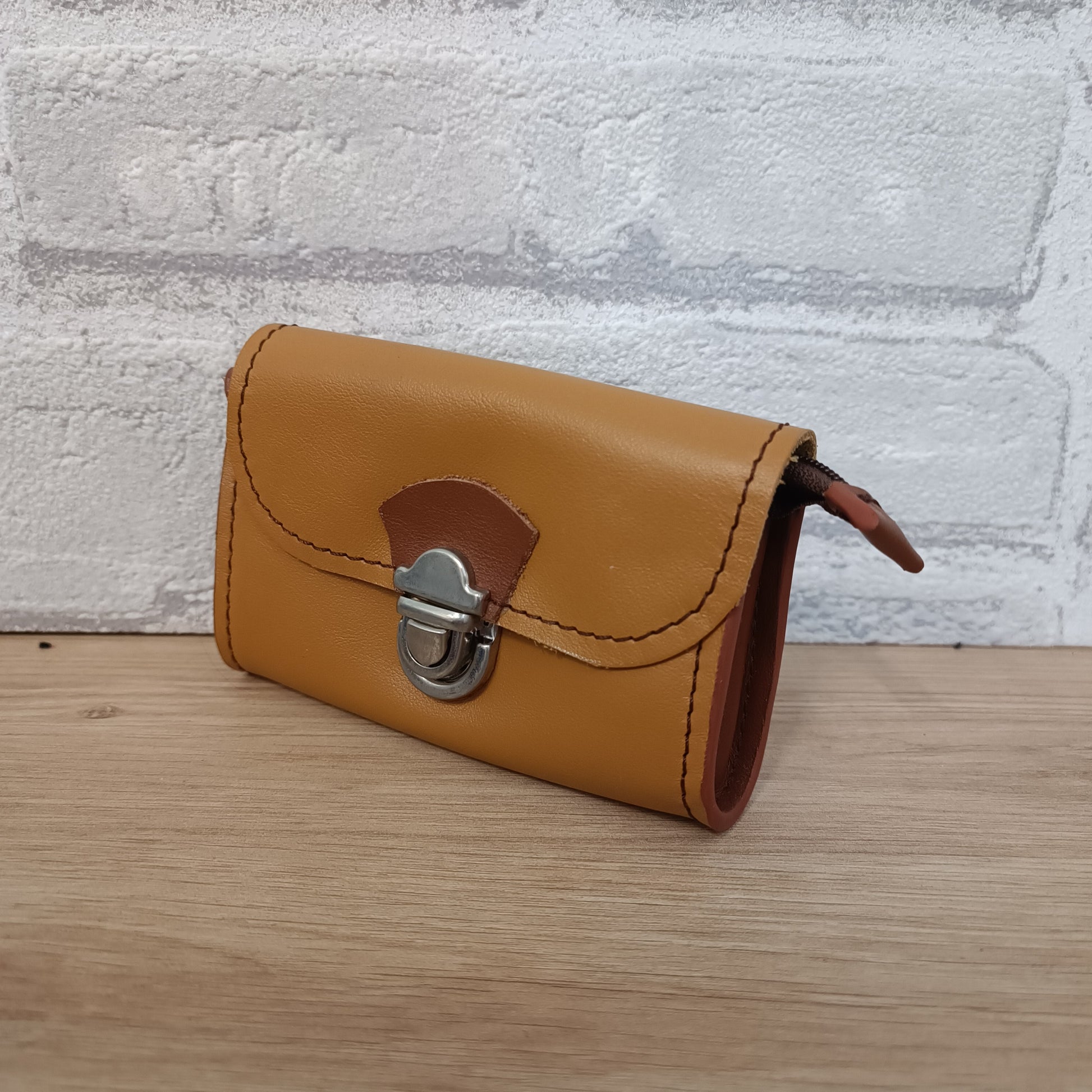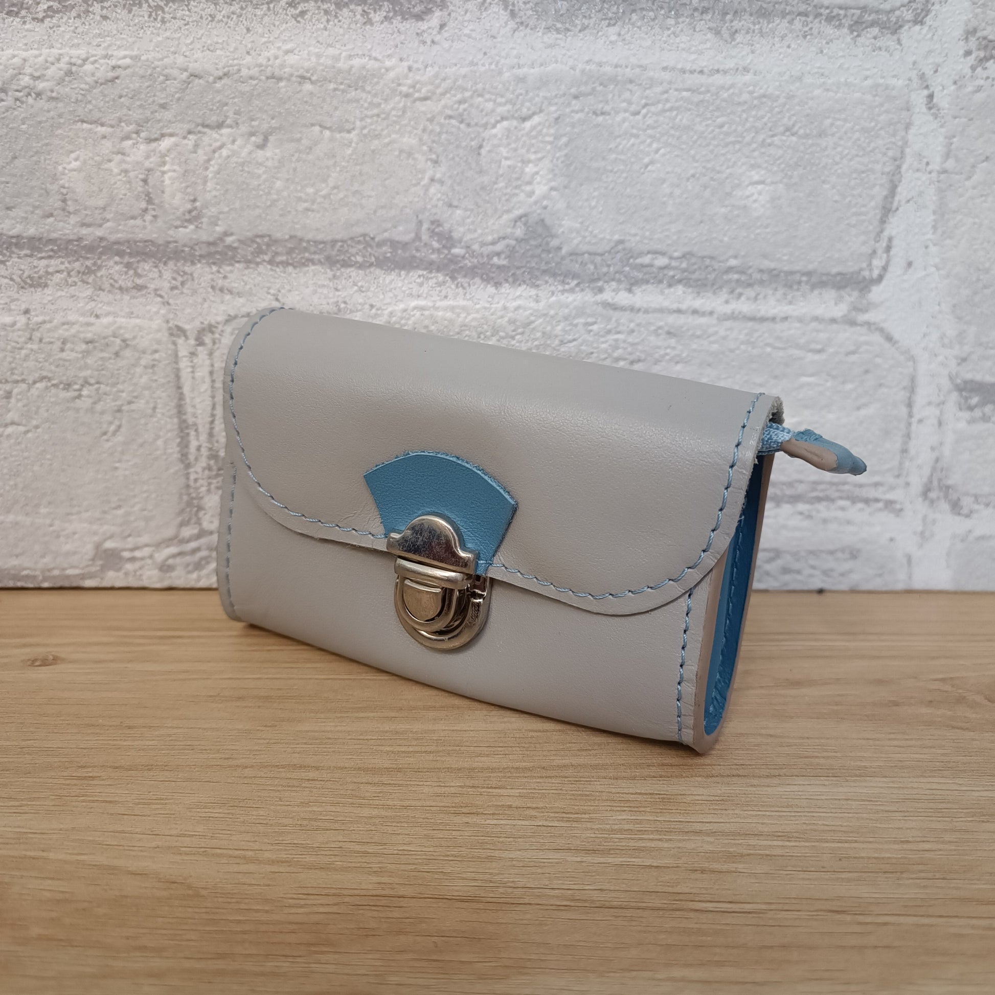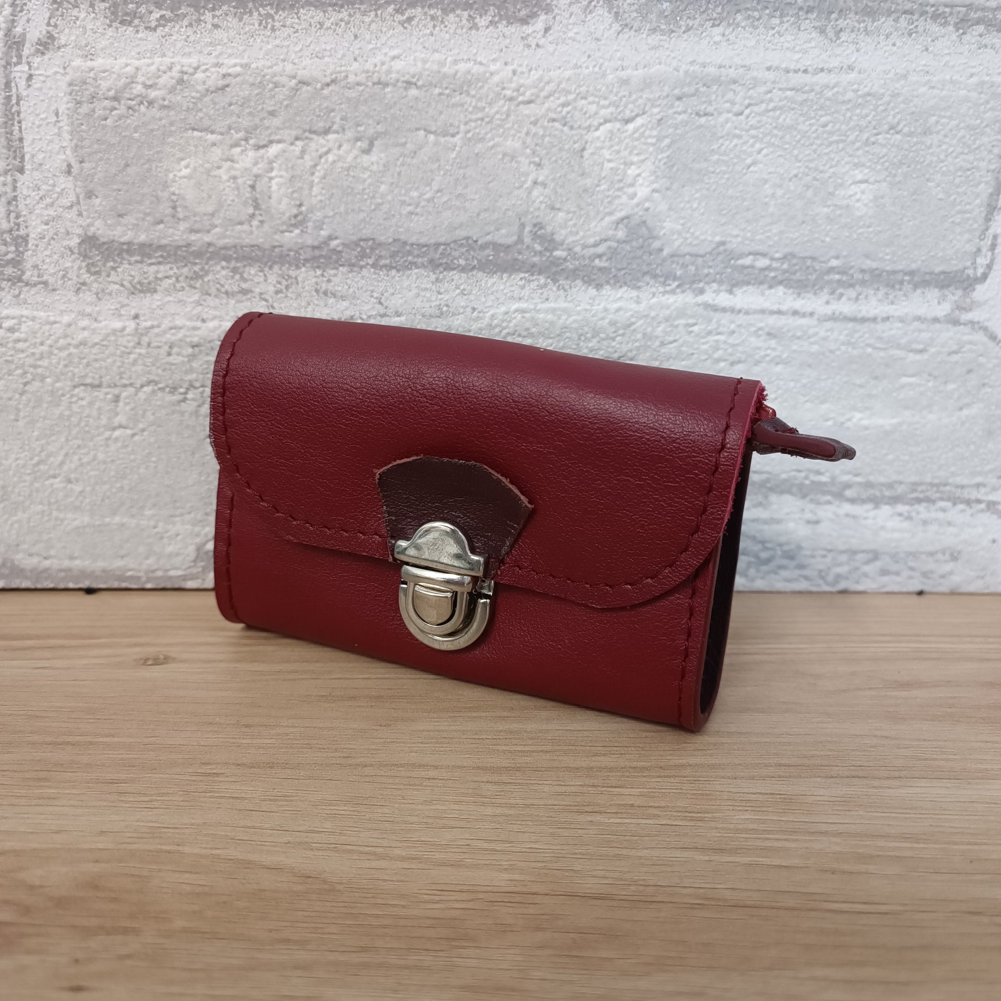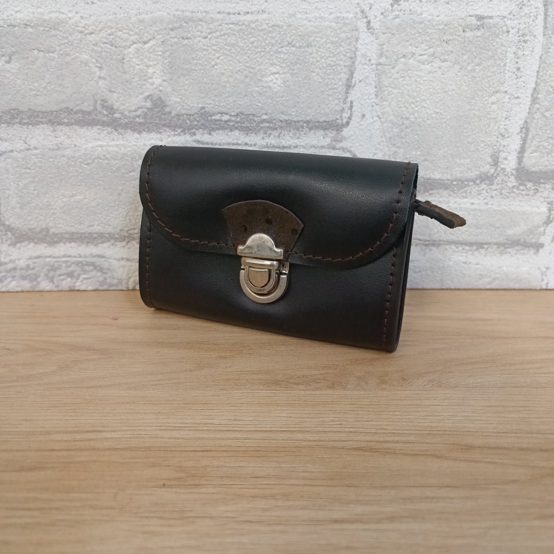 Porte monnaie fabriqué artisanalement dans l'atelier Au Temps du Cuir à Plounevez Lochrist dans le Nord Finistère.