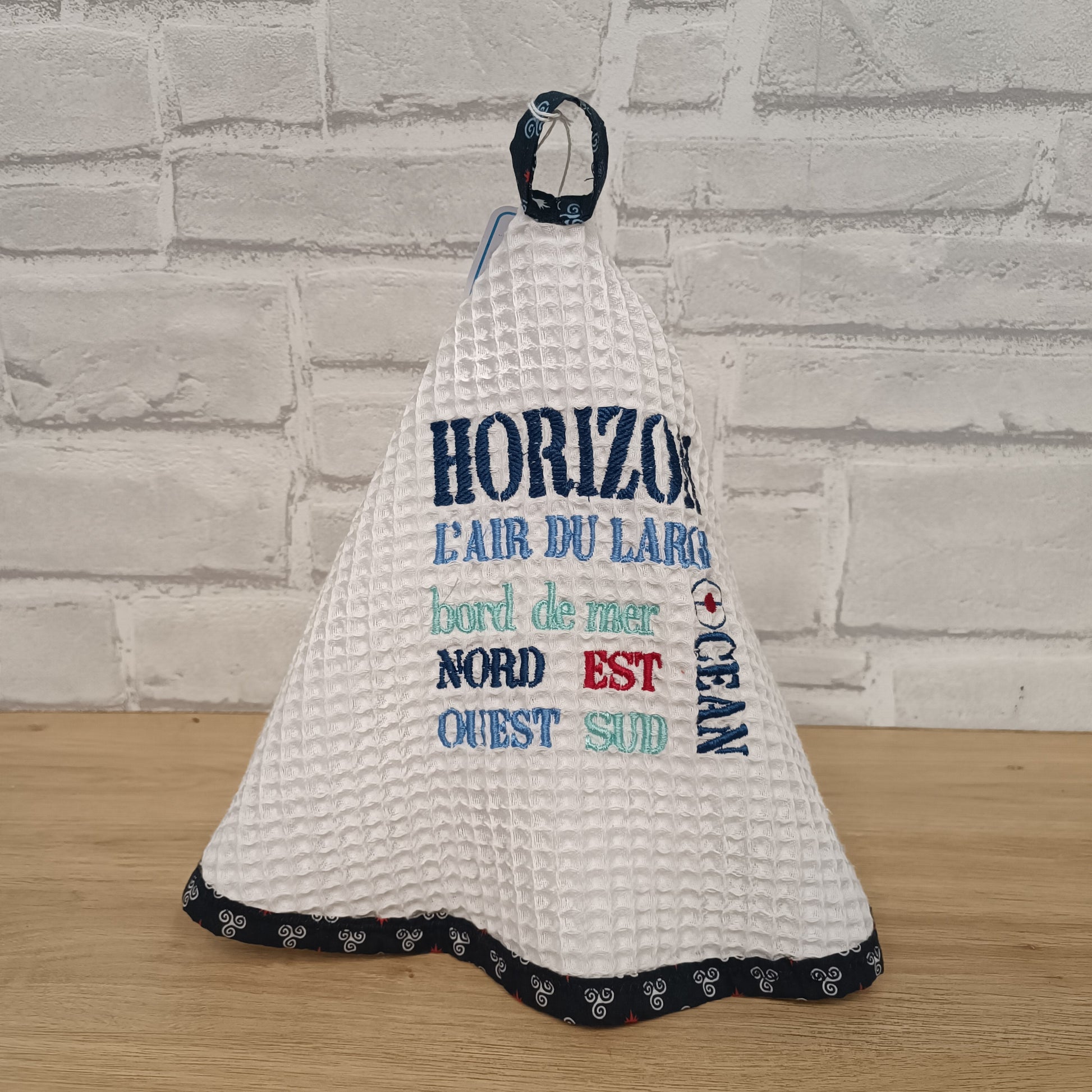 Torchon brodé idéal pour la cuisine ou la salle de bain pour s'essuyer les mains sur le thème de la Breatgne et de la mer